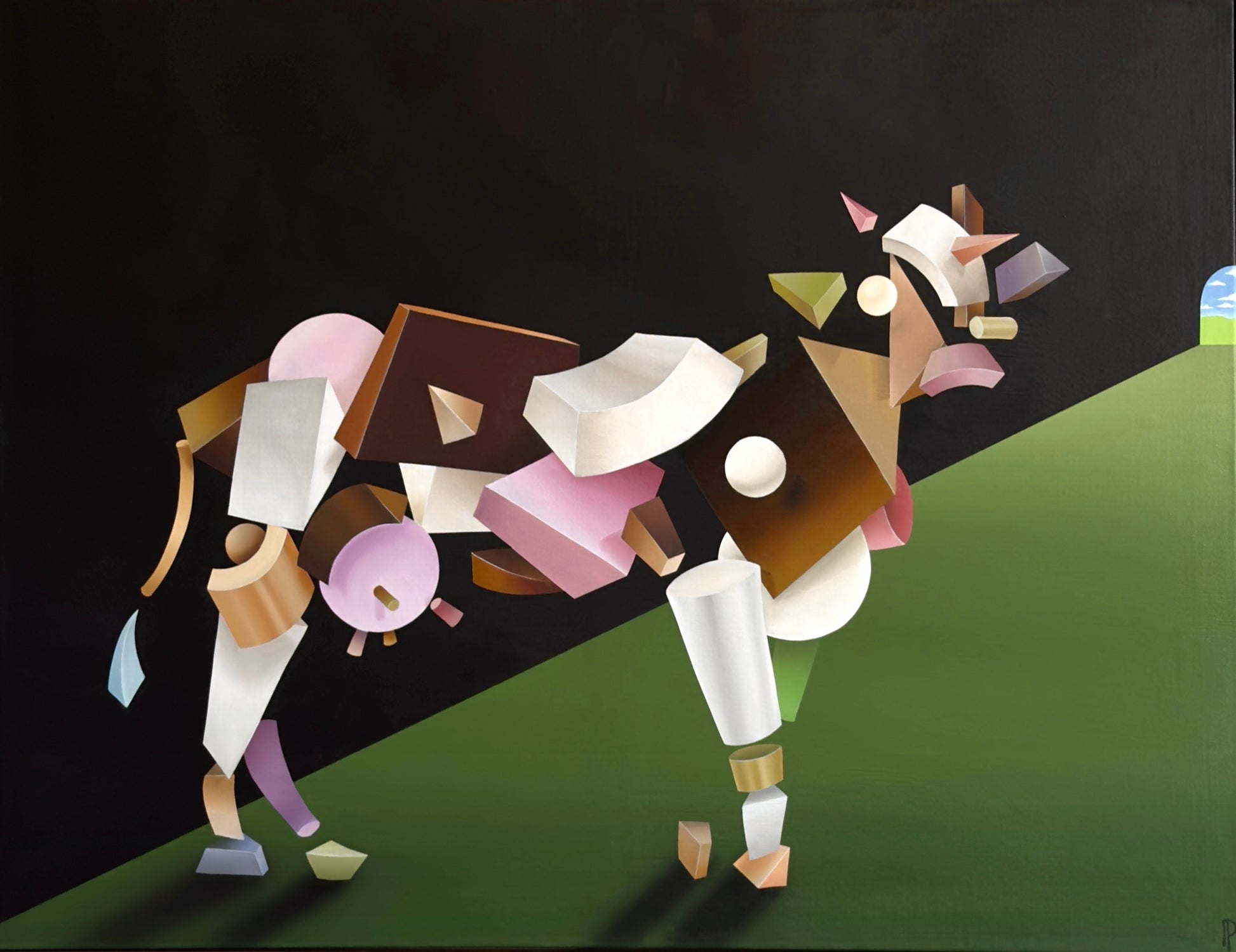 Le tableau Le chemin, déconstruit la figure animale en un assemblage de fragments, à la frontière du réel.
